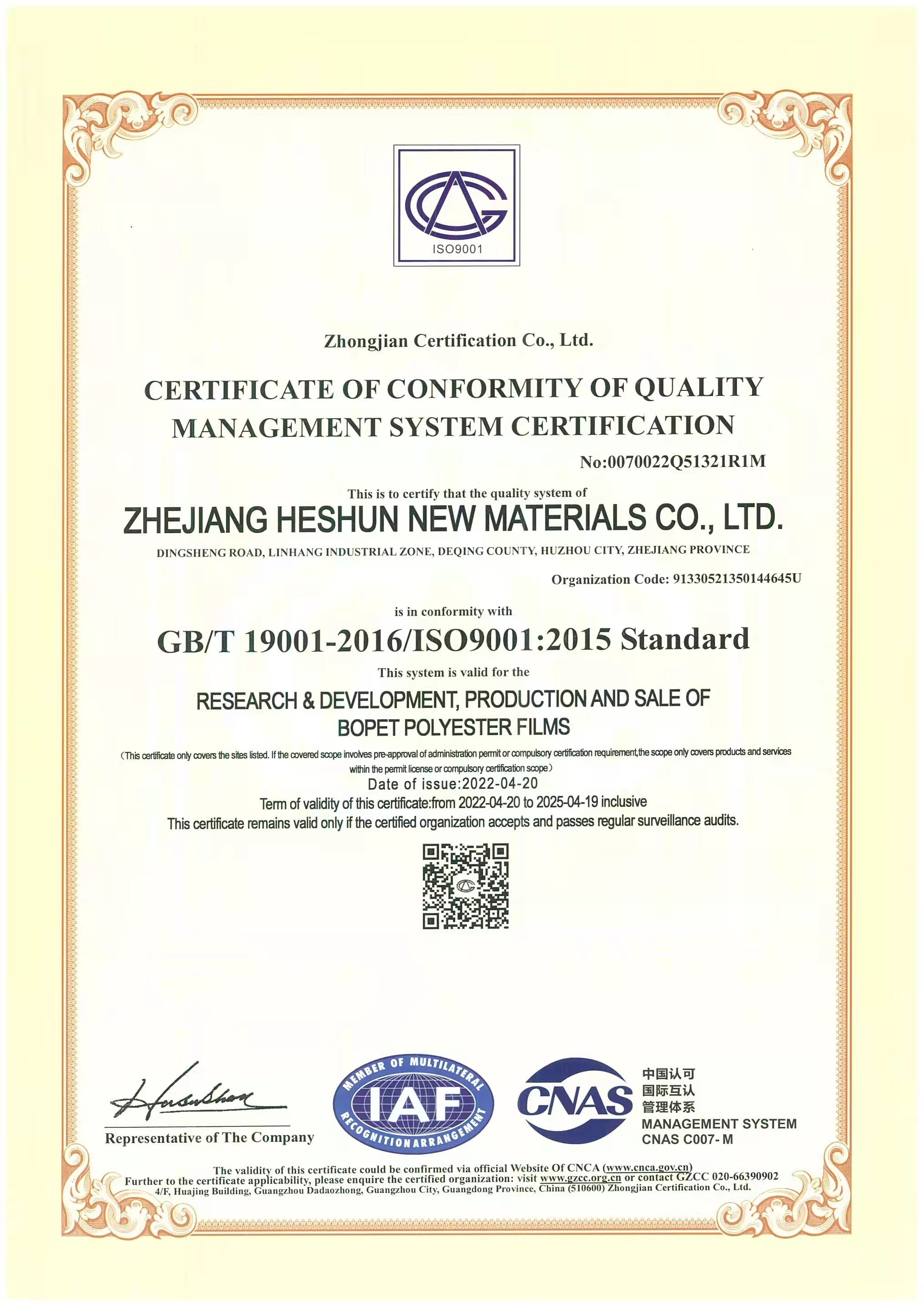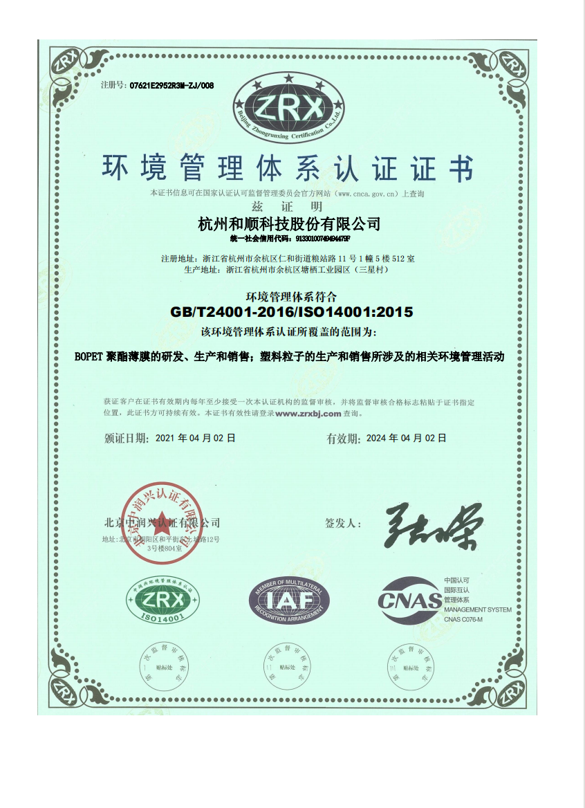In addition to independent research and development, the company also actively carries out technical cooperation projects with Sichuan University, Zhejiang University of Technology and other universities, absorbs the latest research results, and continuously improves the company's new product research and development capabilities. Heshun New Materials Co., Ltd., as a specialized, specialized, and new enterprise in Zhejiang Province, is the leader of differentiated functional products in the national polyester film industry, and its core competitiveness lies in its continuous R&D and innovation capabilities. After years of accumulation, we have mastered a number of advanced processes and unique formulation technologies for the manufacture of polyester film materials. At the same time, we know that continuous innovation is the source of enterprise development, and continuous exploration and accumulation of strong scientific research capabilities can be better. create value for customers. To this end, we continue to expand scientific research investment, introduce various professional talents, configure relevant equipment, and have an excellent team of nearly 50 engineers